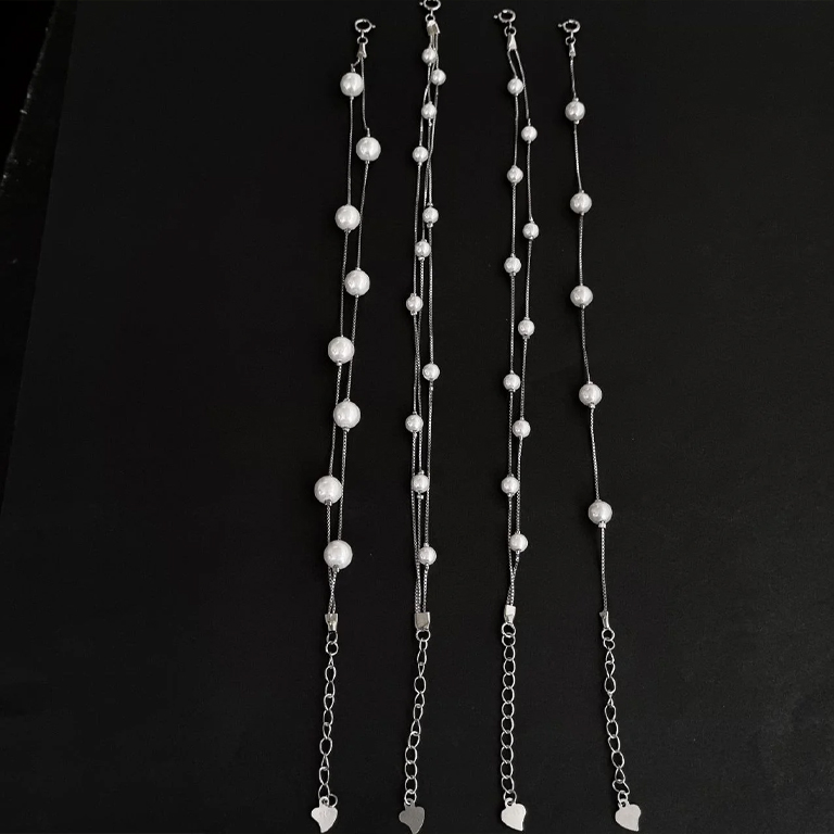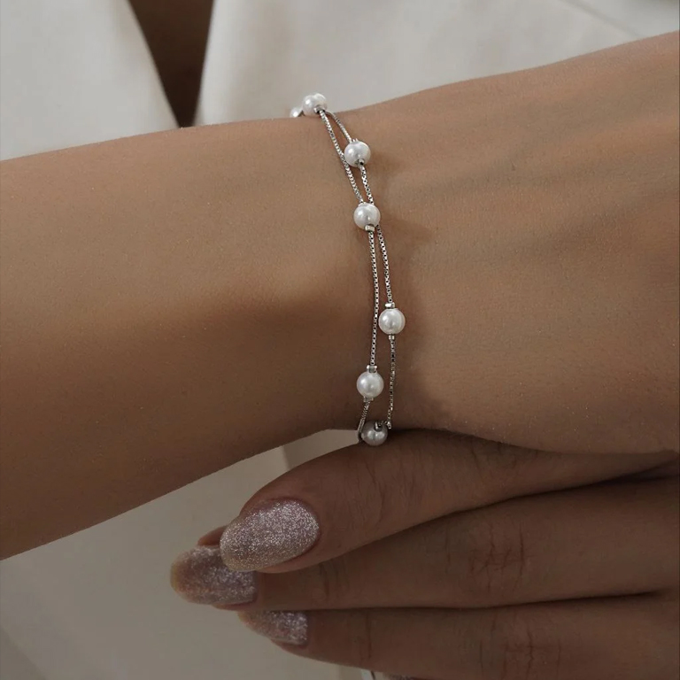 دستبند مرواریدی نقره زنانه مدل دو رج کد ITL-326