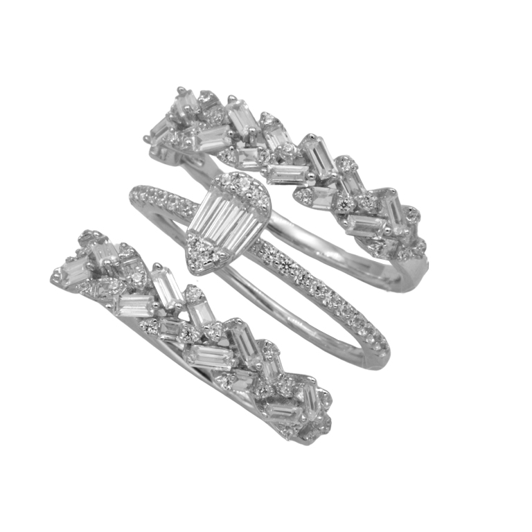 ست انگشتر نقره زنانه مدل حلقه و پشت حلقه طرح جواهر کد ITL-209